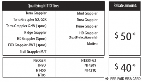 QUALIFYING NITTO TIRES AND REBATE DATES: